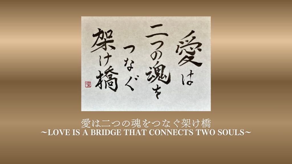 The Power of Words in a Single Brushstroke. When ink moves across paper, words are no longer merely "letters." The words that calligrapher Shourin Iwasaki poured into this work are: "Love is a bridge that connects two souls." The brushst... -