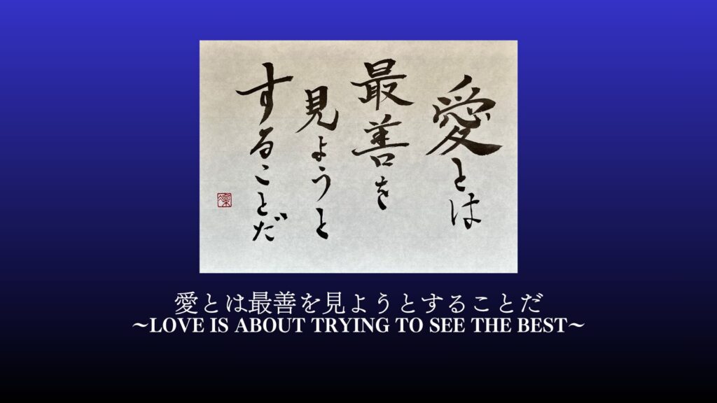 Meeting a Single Work of Calligraphy. On washi paper with a beautiful gradient of white and gray, bold yet gently flowing strokes of ink spell out a message. "Love is about trying to see the best." The moment you encounter these words br... -