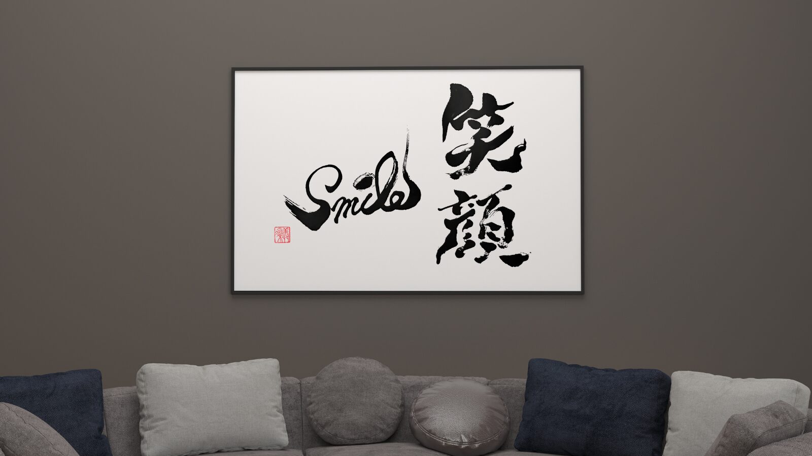 On the right side, the powerful yet graceful Chinese characters for “smile.”