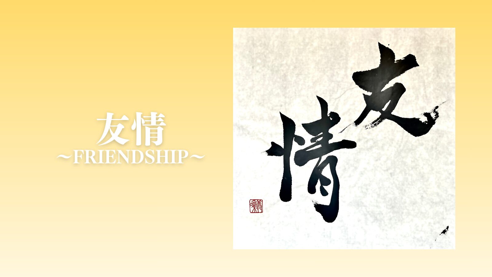 The character 「友」spreads boldly across the upper right, while 「情」stands below it with a power that seems to defy gravity.