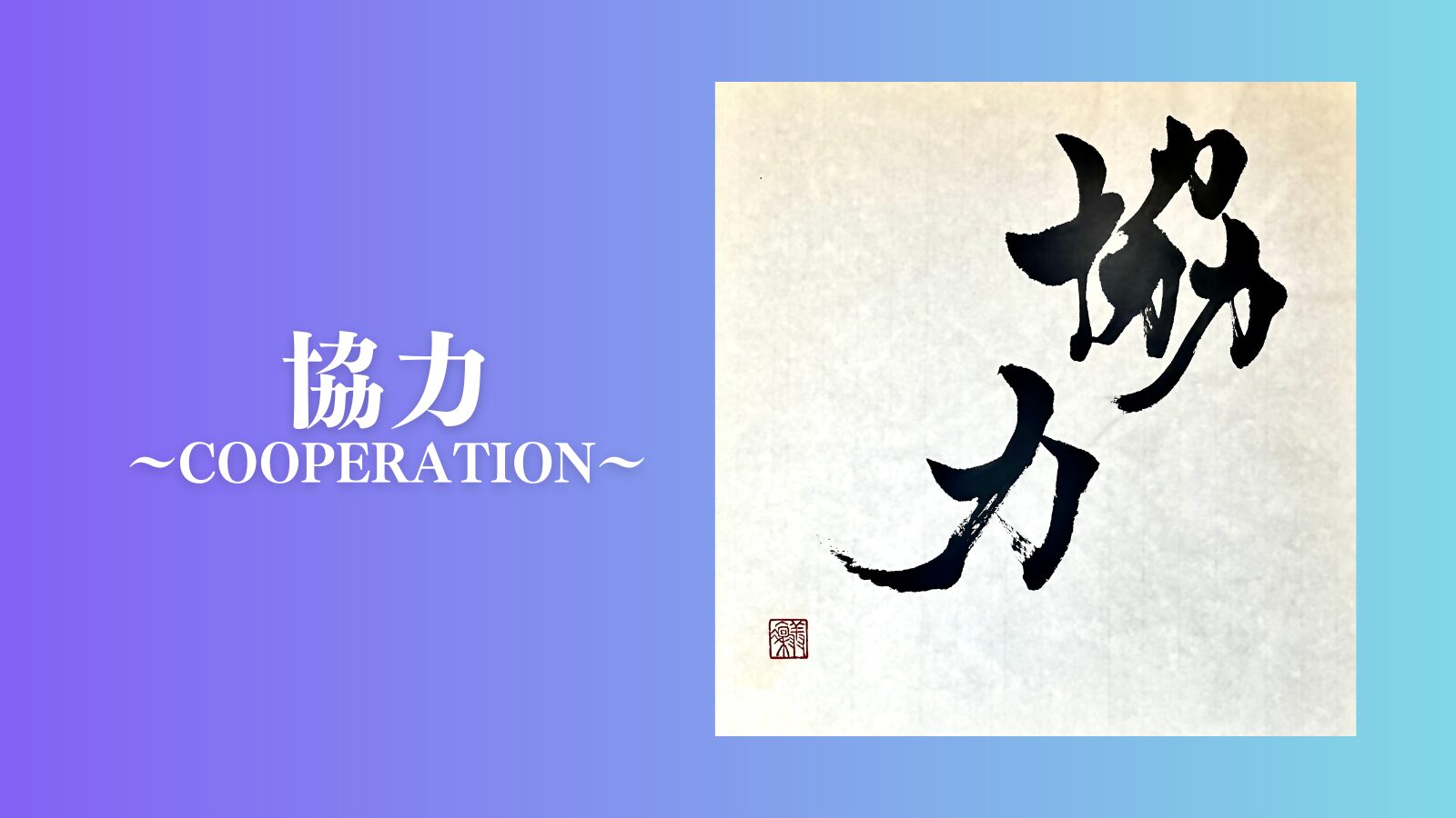 The generous form of “協” (kyō) sits at the top, and from it, “力” (ryoku) flows downward as if cascading naturally beneath.