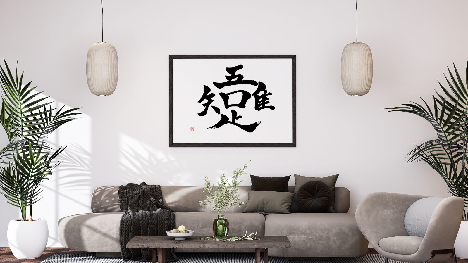 Its origins trace back to a passage in Chapter 33 of Laozi’s Tao Te Ching — “知足者富 (He who knows contentment is wealthy)” — which was later absorbed into the world of Zen Buddhism and crystallized into these four compact characters.